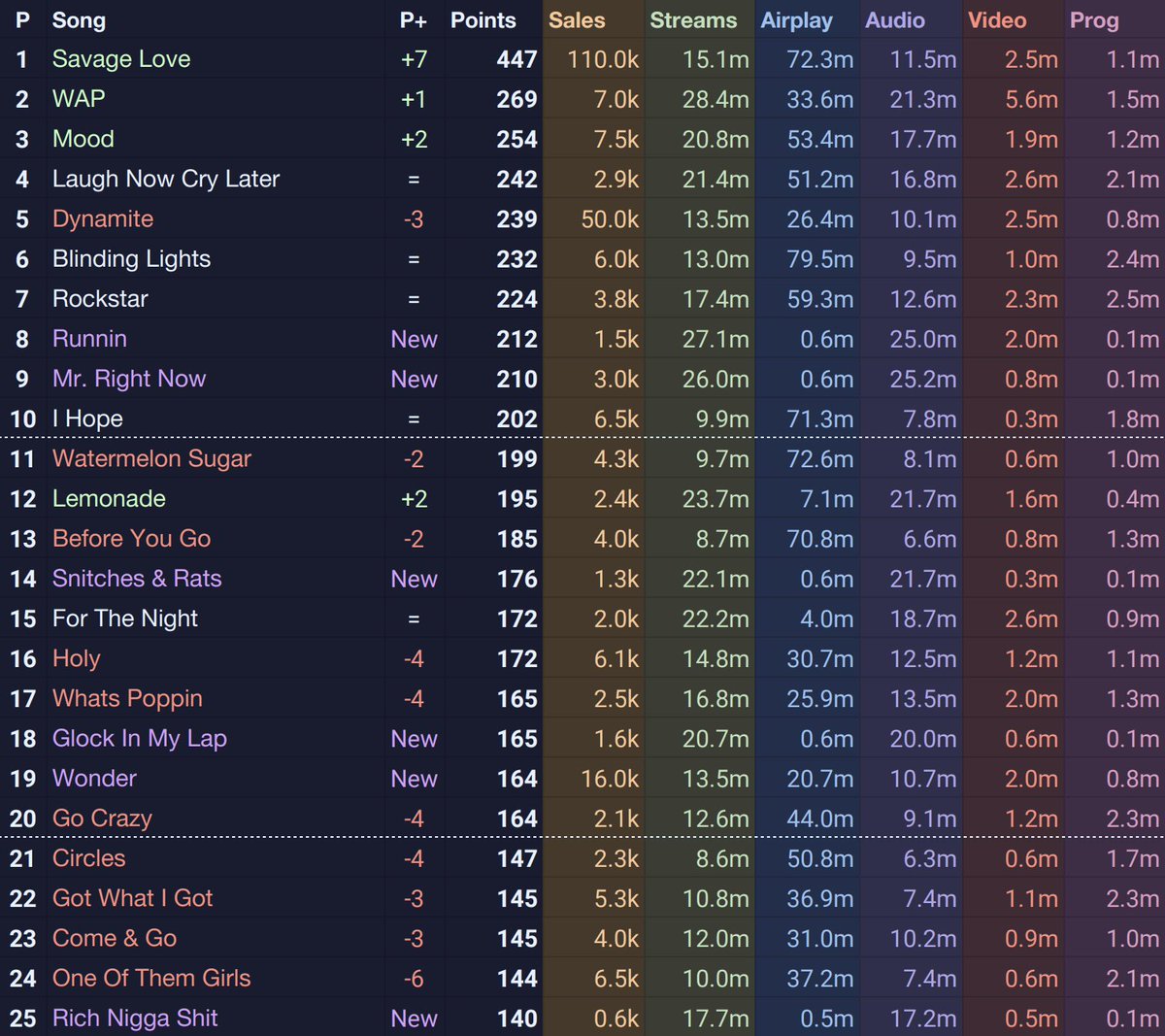 Its a wide-open pop universe at the beginning of 2021 when after a packed holiday season and now a near-full year of pandemic-induced global shutdown it seems. I think 2021 is gonna be very transitional as society hopefully goes back to normal pre-pandemic music consumption habits by the end of the year.